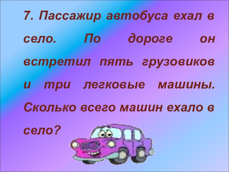 Слайд 167. Пассажир автобуса ехал в село. По дороге он встретил пять
