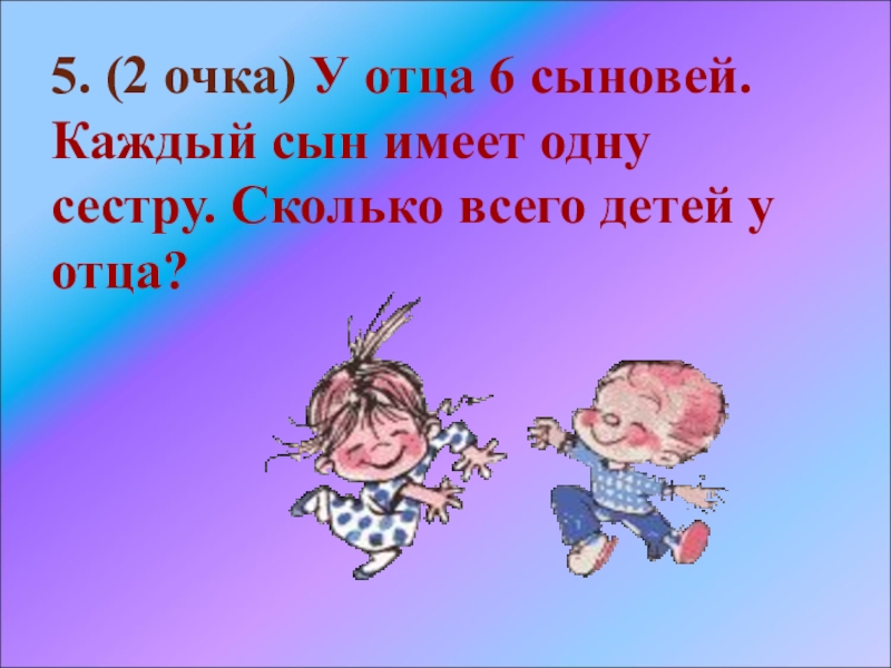 Слайд 625. (2 очка) У отца 6 сыновей. Каждый сын имеет одну