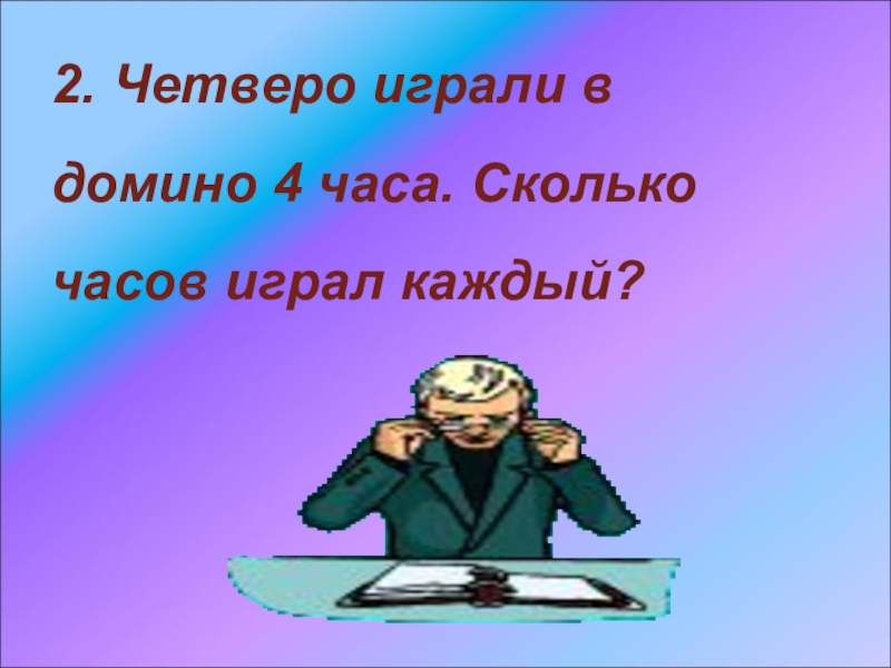 Слайд 62. Четверо играли в домино 4 часа. Сколько часов играл каждый?