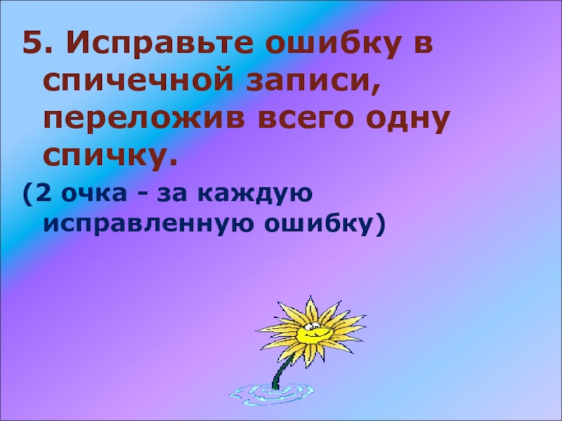 Слайд 505. Исправьте ошибку в спичечной записи, переложив всего одну спичку.