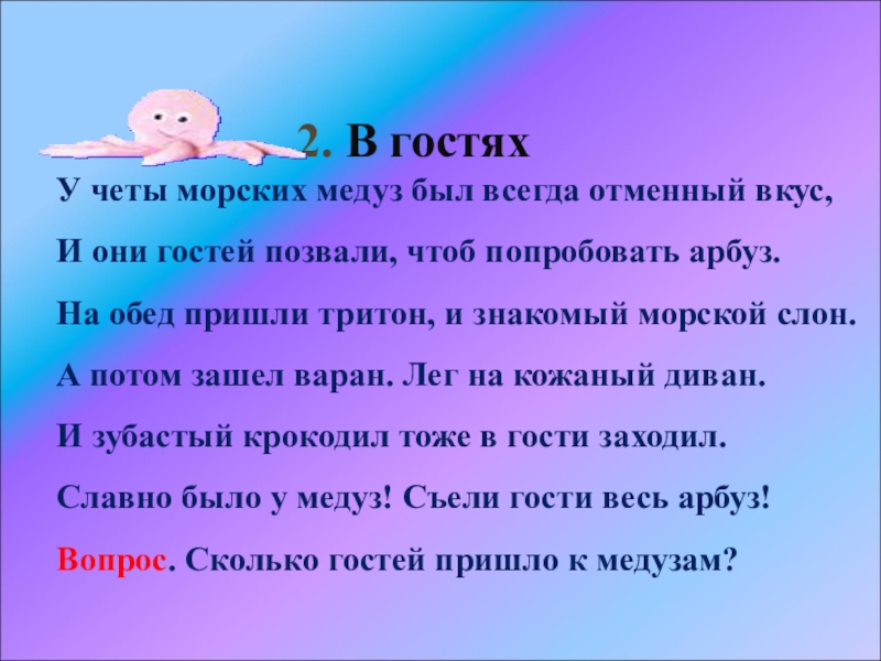 Вопрос. Сколько гостей пришло к медузам?
