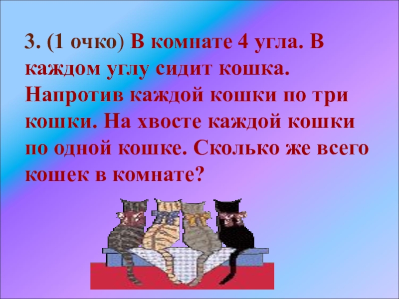 Слайд 583. (1 очко) В комнате 4 угла. В каждом углу сидит