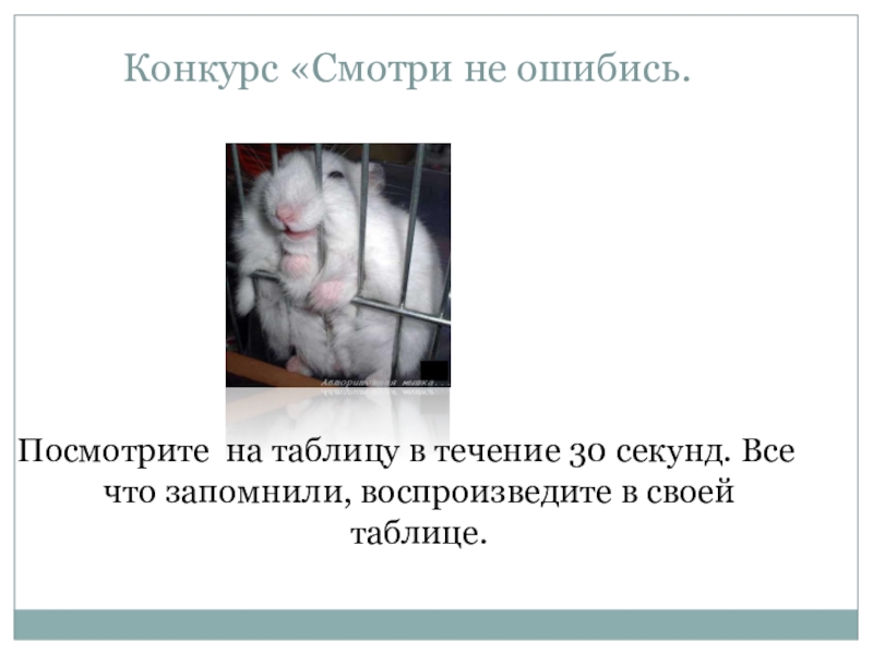Конкурс «Смотри не ошибись.   Посмотрите на таблицу в течение 30 секунд. Все что запомнили, воспроизведите