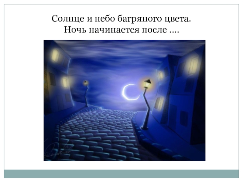 Солнце и небо багряного цвета.Ночь начинается после ....