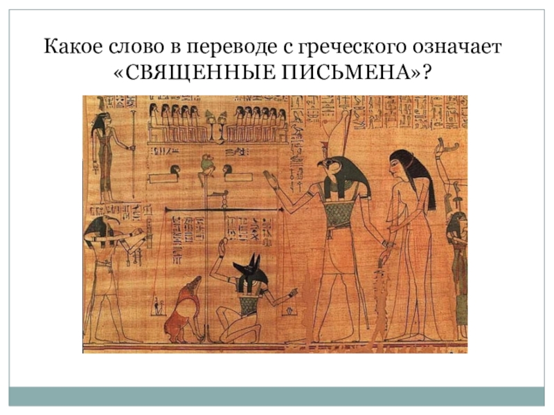 Слайд 6Какое слово в переводе с греческого означает «СВЯЩЕННЫЕ ПИСЬМЕНА»?