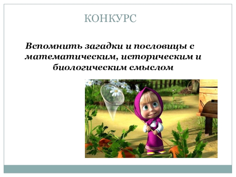 КОНКУРСВспомнить загадки и пословицы с математическим, историческим и биологическим смыслом