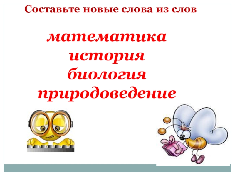 Слайд 34 Составьте новые слова из слов математика история биология природоведение