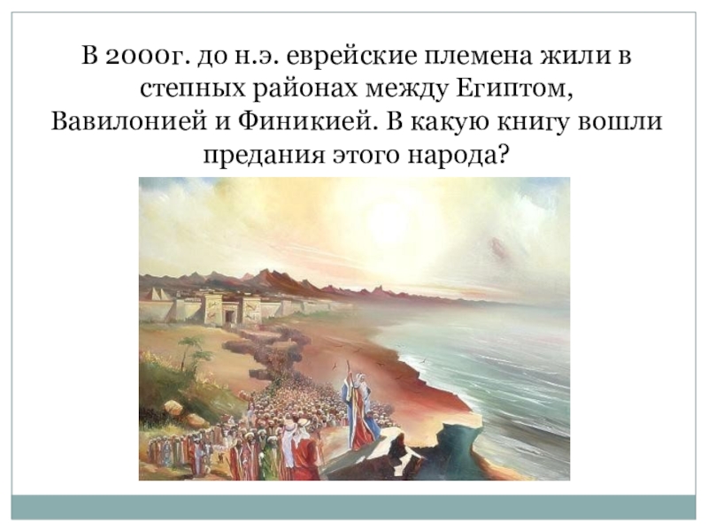 В 2000г. до н.э. еврейские племена жили в степных районах между Египтом, Вавилонией и Финикией. В какую