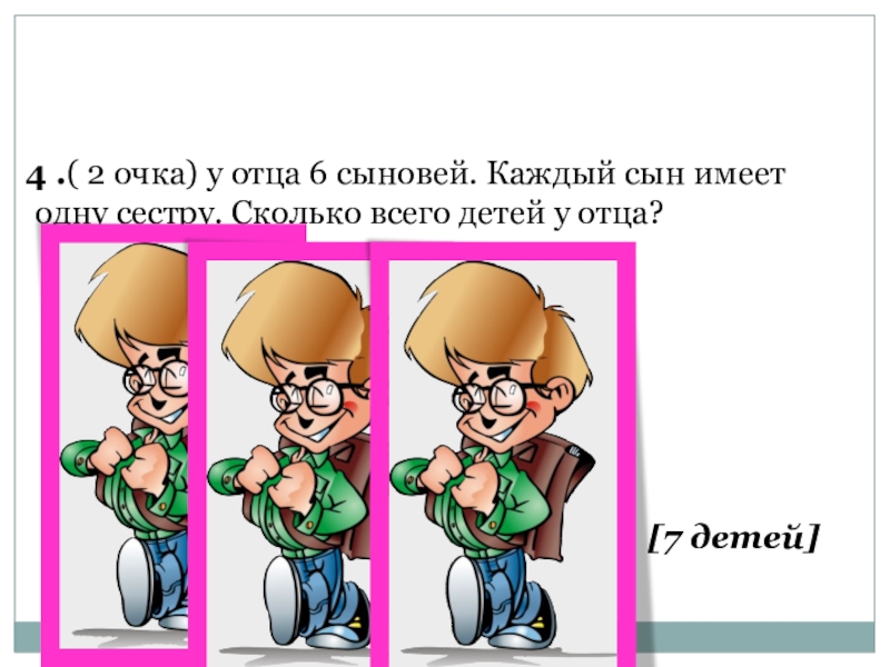 Слайд 30 4 .( 2 очка) у отца 6 сыновей. Каждый сын