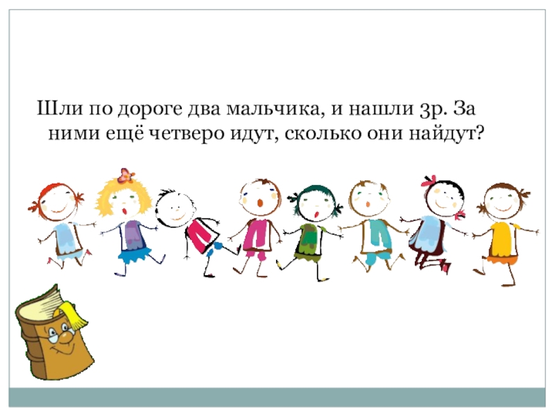 Слайд 4 Шли по дороге два мальчика, и нашли 3р. За ними
