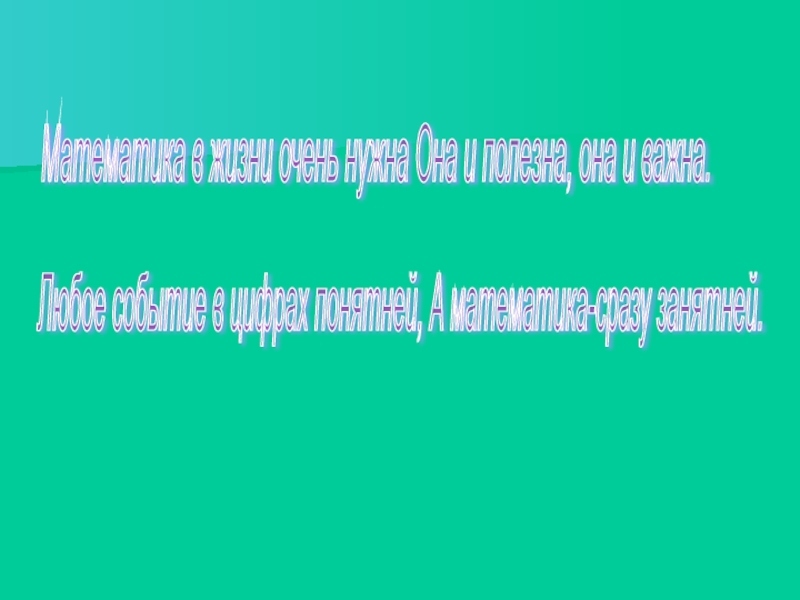 Любое событие в цифрах понятней, А математика-сразу занятней.