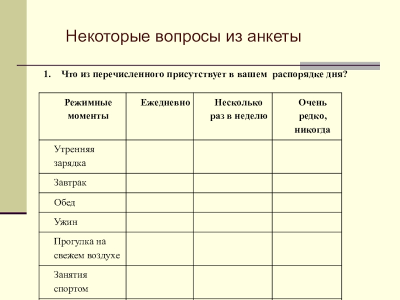 Слайд 2Что из перечисленного присутствует в вашем распорядке дня?