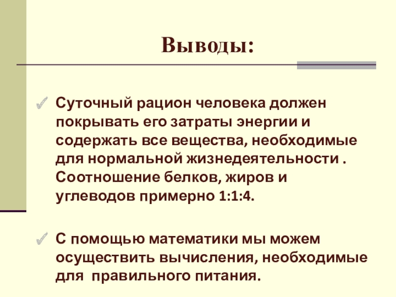 С помощью математики мы можем осуществить вычисления, необходимые для правильного питания.