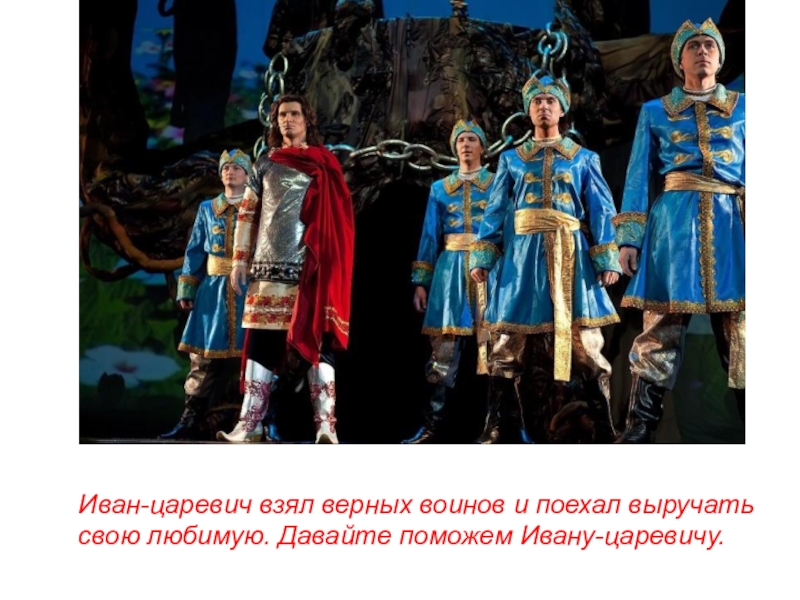 Слайд 8Иван-царевич взял верных воинов и поехал выручать