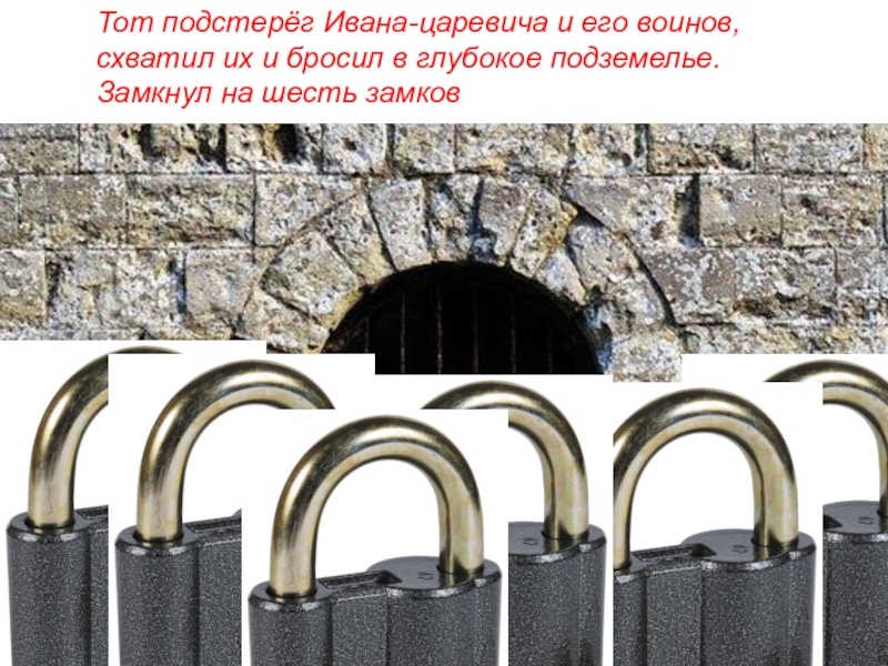 тоТот подстерёг Ивана-царевича и его воинов,схватил их и бросил в глубокое подземелье.Замкнул на шесть замков