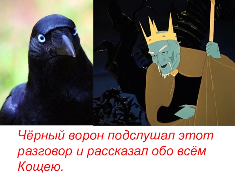 Чёрный ворон подслушал этотразговор и рассказал обо всёмКощею.