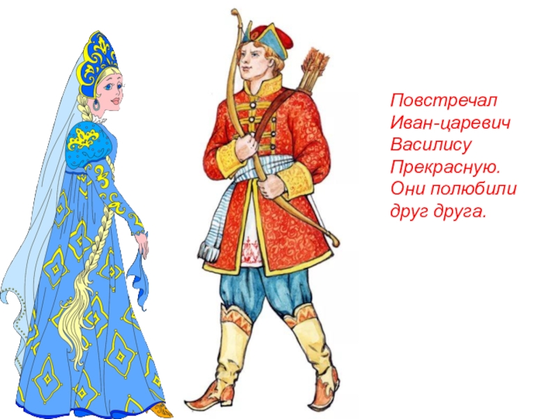 ПовстречалИван-царевичВасилисуПрекрасную.Они полюбилидруг друга.