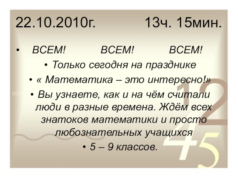 Это сайт презентаций, где можно хранить и обмениваться своими презентациями, докладами, проектами, шаблонами в формате PowerPoint с другими пользователями. Мы помогаем школьникам, студентам, учителям, преподавателям хранить и обмениваться учебными материалами.