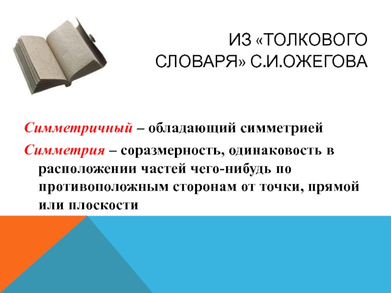 Симметрия – соразмерность, одинаковость в расположении частей чего-нибудь по противоположным сторонам от точки, прямой или плоскости