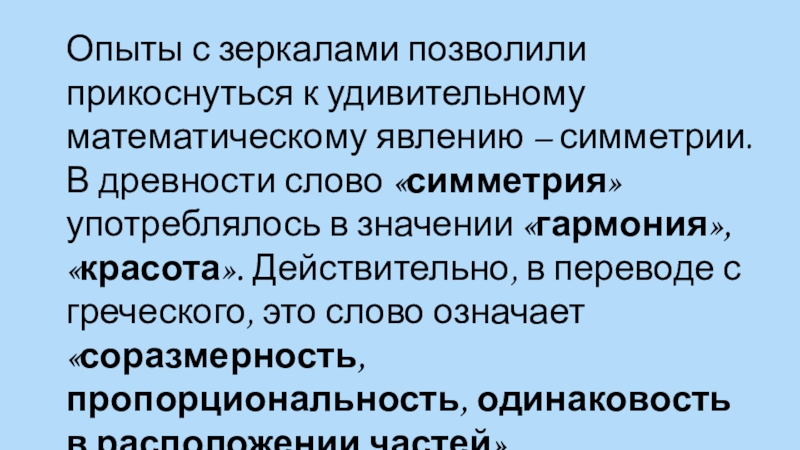 Для того, чтобы доказать зеркальное отражение некоторых слов мы провели опыты с помощью зеркала. На листе бумаги мы написала слова НОС и ТОП. Зеркало мы ставили со всех сторон от слова. Для того, чтобы слово НОС не изменилось, зеркало нужно поместить сверху или снизу от него.