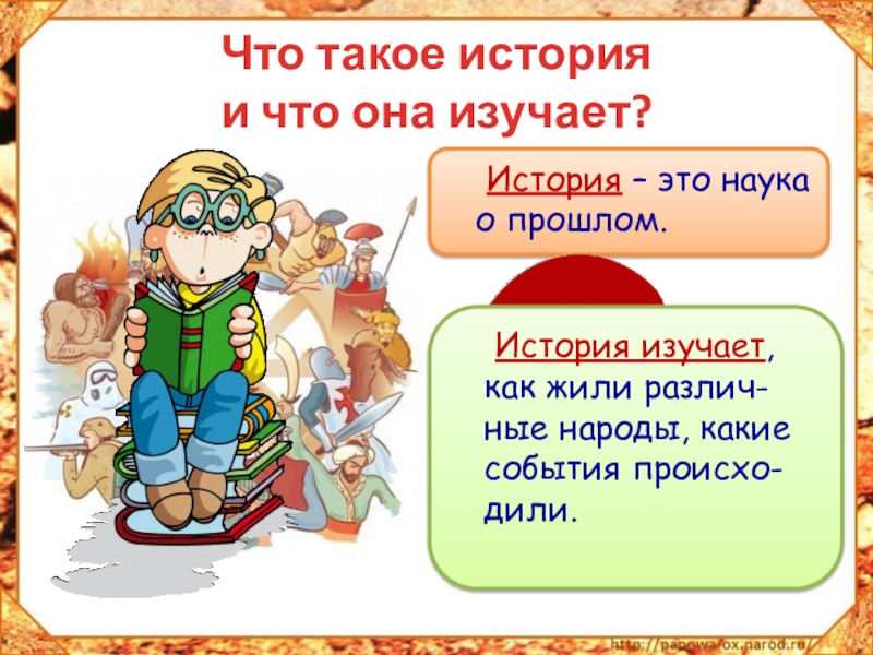 История изучает, как жили различ-ные народы, какие события происхо-дили.
