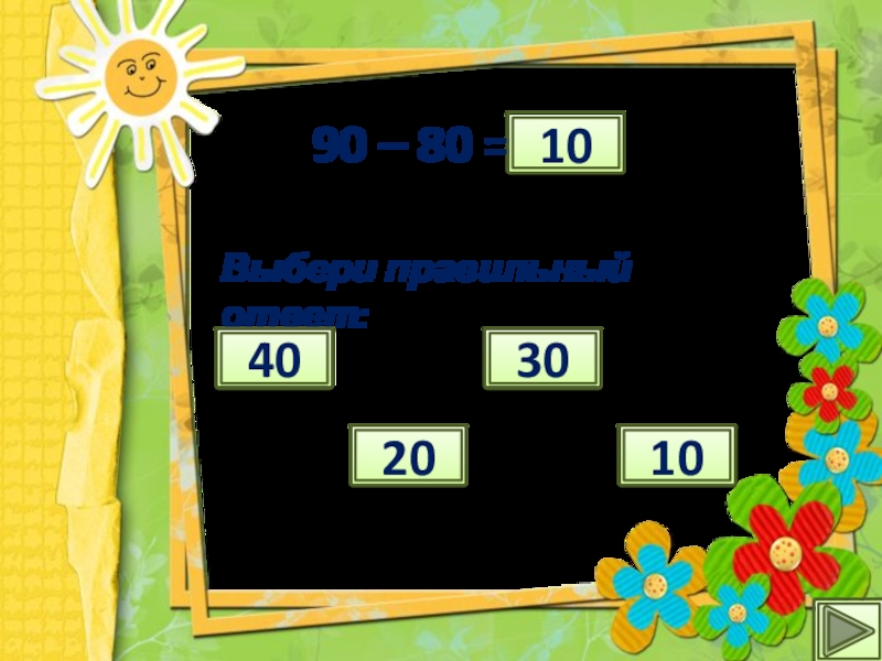 Презентация, доклад по математике Вычитание целых чисел и круглых десятков. Интерактивный тренажёр