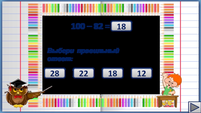 100 – 82 = ? Выбери правильный ответ:1818122228