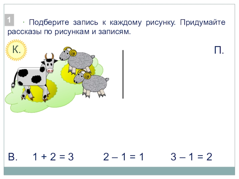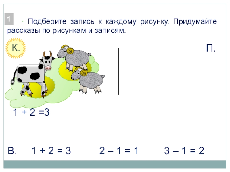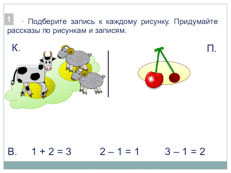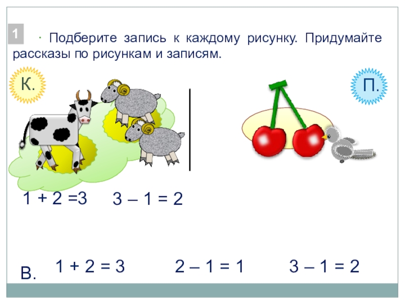 Подберите запись к каждому рисунку. Придумайте рассказы по рисункам и записям.