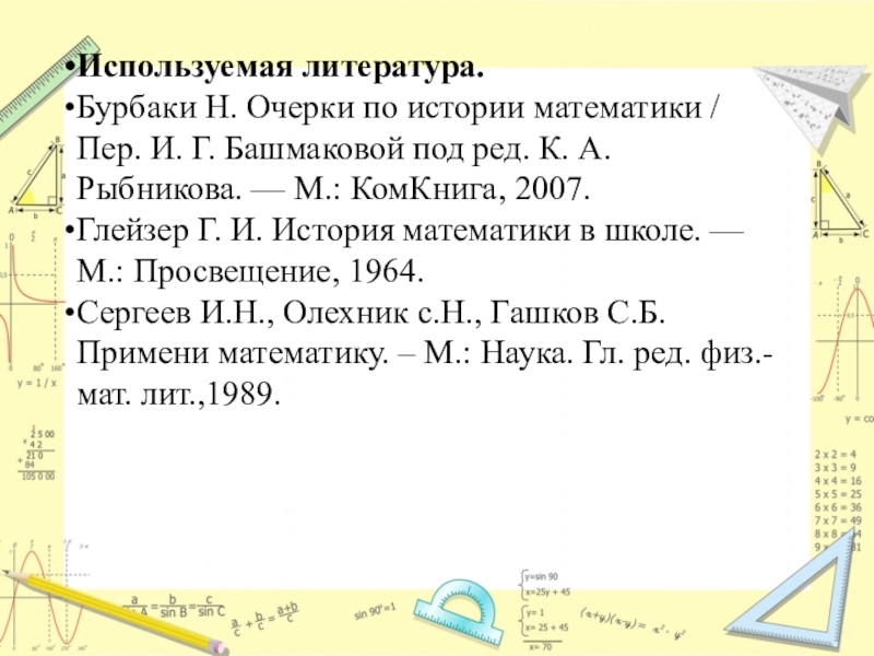 Сергеев И.Н., Олехник с.Н., Гашков С.Б. Примени математику. – М.: Наука. Гл. ред. физ.-мат. лит.,1989.