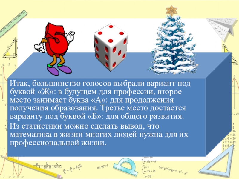 Слайд 17Итак, большинство голосов выбрали вариант под буквой «Ж»: в будущем для
