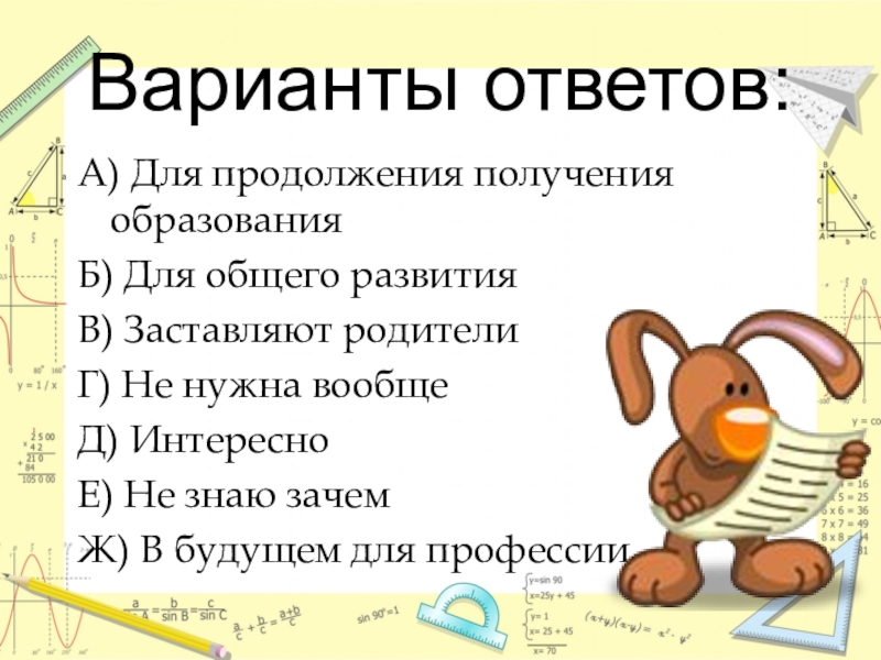 что математика пригодится в жизни. К сожалению, нашлись ученики, которых родители заставляют учить математику.