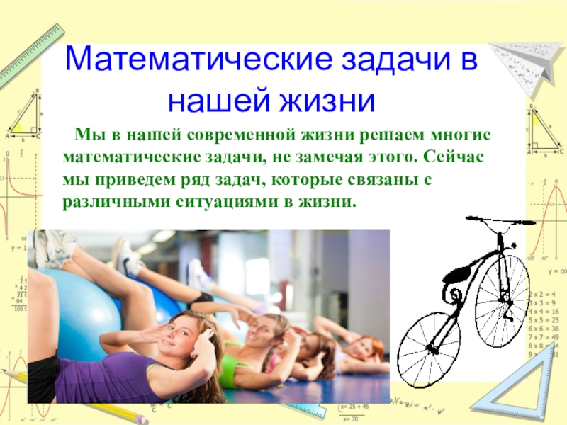 математические задачи, не замечая этого. Сейчас мы приведем ряд задач, которые связаны с различными ситуациями в жизни.
