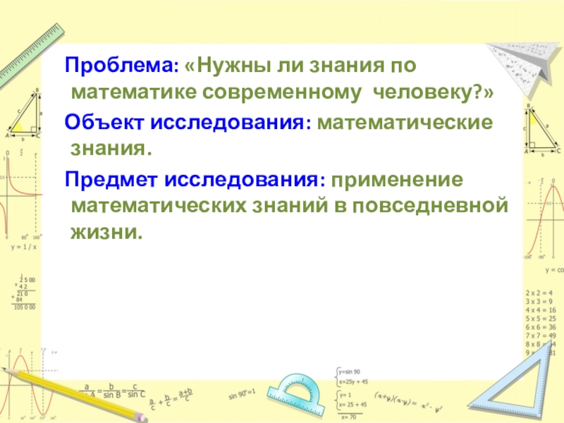 Слайд 5 Проблема: «Нужны ли знания по математике современному человеку?»
