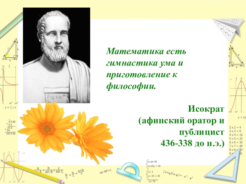 Слайд 2Математика есть гимнастика ума и приготовление к философии.