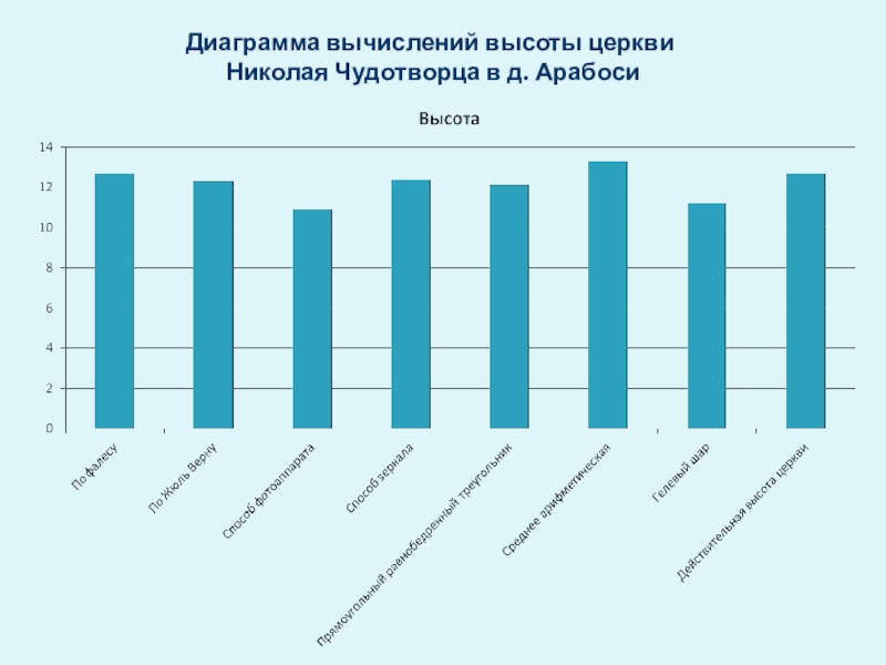 Слайд 19Таблица подсчёта высоты церкви Николая Чудотворца д. Арабоси