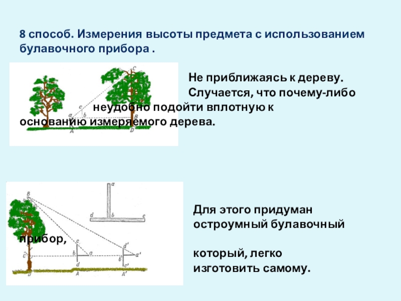 8 способ. Измерения высоты предмета с использованием булавочного прибора .
