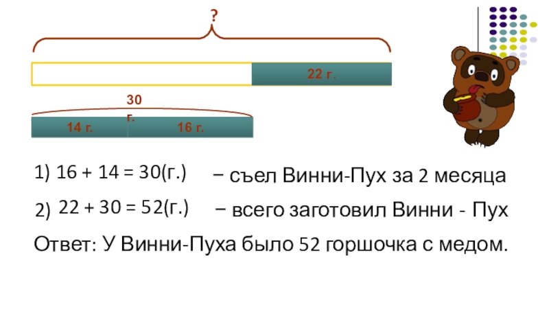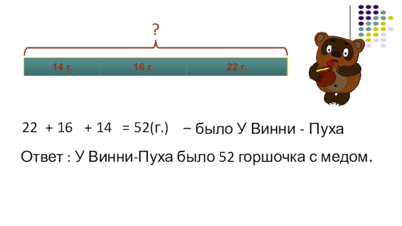После этого у него осталось ещё 22 горшочка с мёдом.