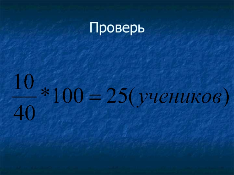 Нахождение числа по его процентуВ классе 10 девочек, что составляет 40% всех учащихся.Сколько учеников в классе?