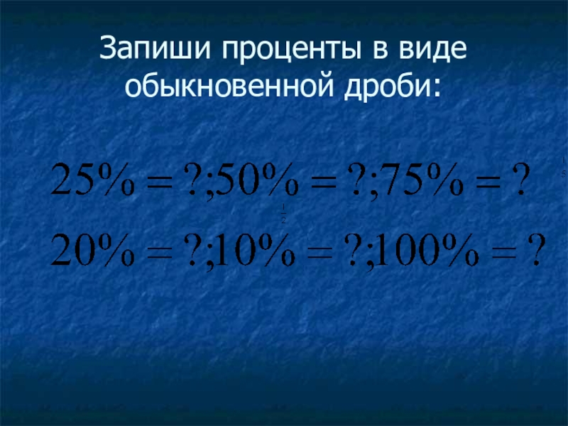 Слайд 4Запиши проценты в виде обыкновенной дроби: