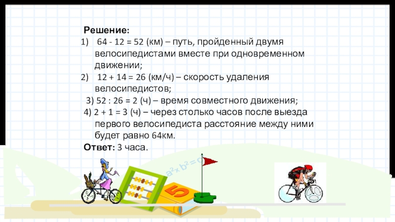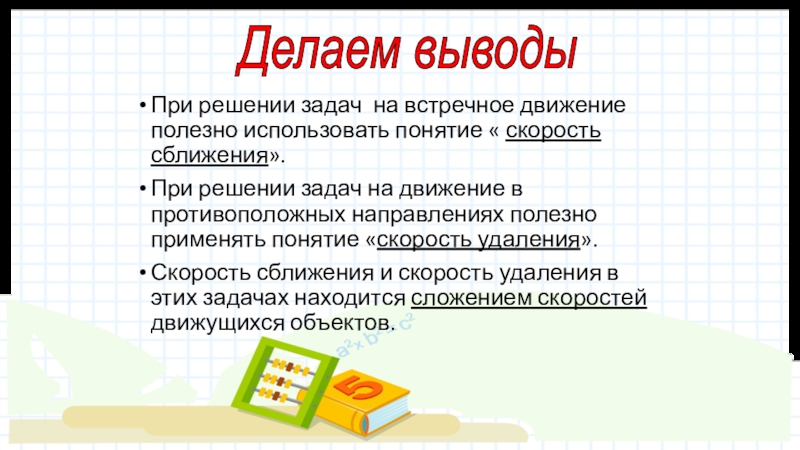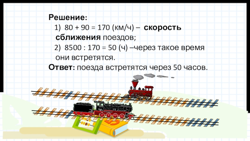 При решении этих задач надо использовать понятия «скорость сближения» и « скорость удаления».