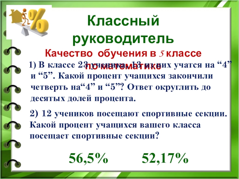 2) 12 учеников посещают спортивные секции. Какой процент учащихся вашего класса посещает спортивные секции?