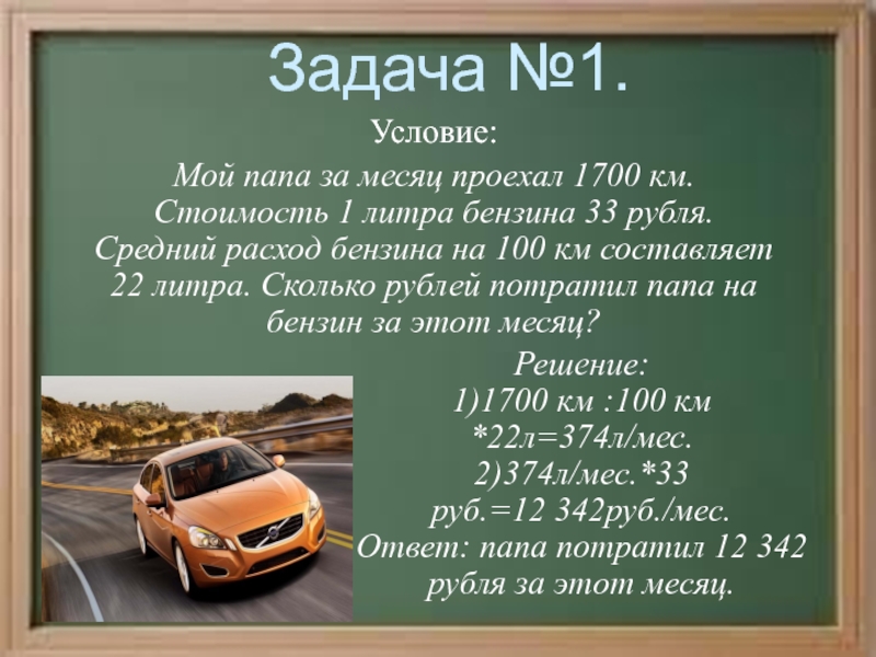 1)3100км: 100км *15л.=465л (потратится за всю дорогу)