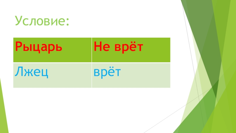 Презентация, доклад по математике Задачи про лжецов и рыцарей