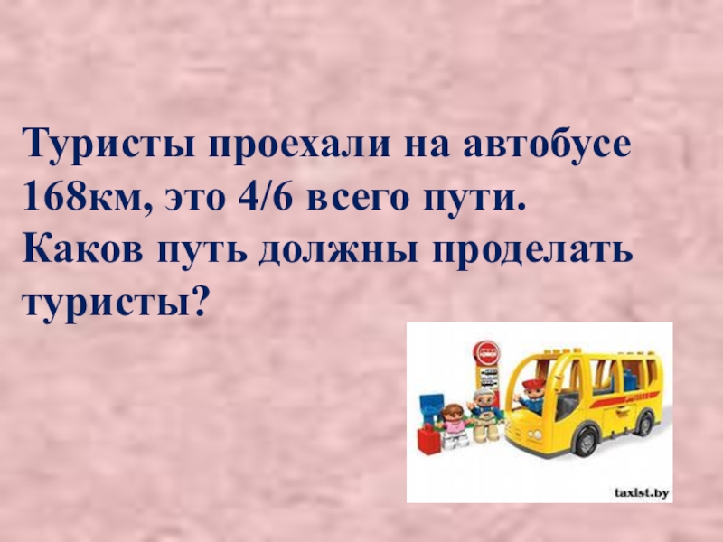 Туристы проехали на автобусе168км, это 4/6 всего пути.Каков путь должны проделать туристы?