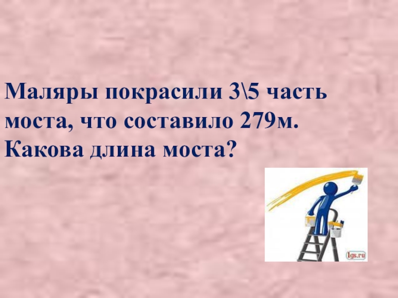 Маляры покрасили 3\5 часть моста, что составило 279м. Какова длина моста?