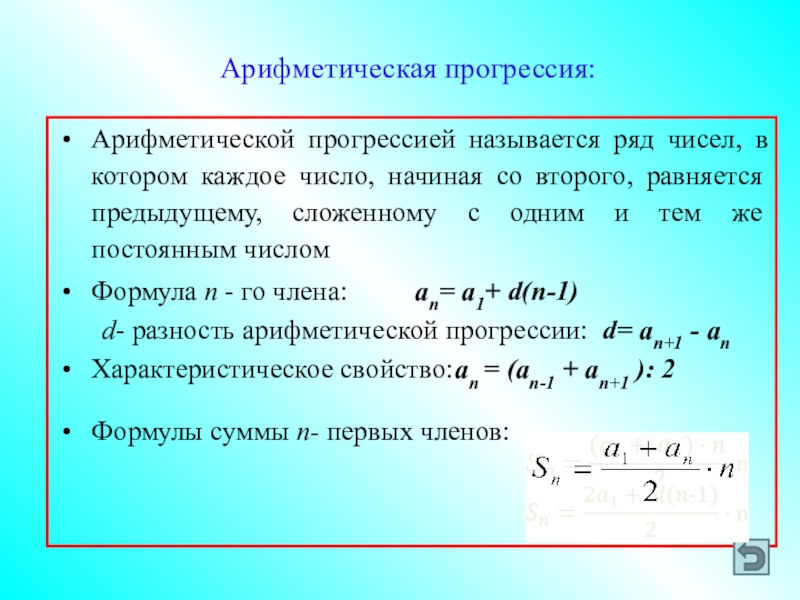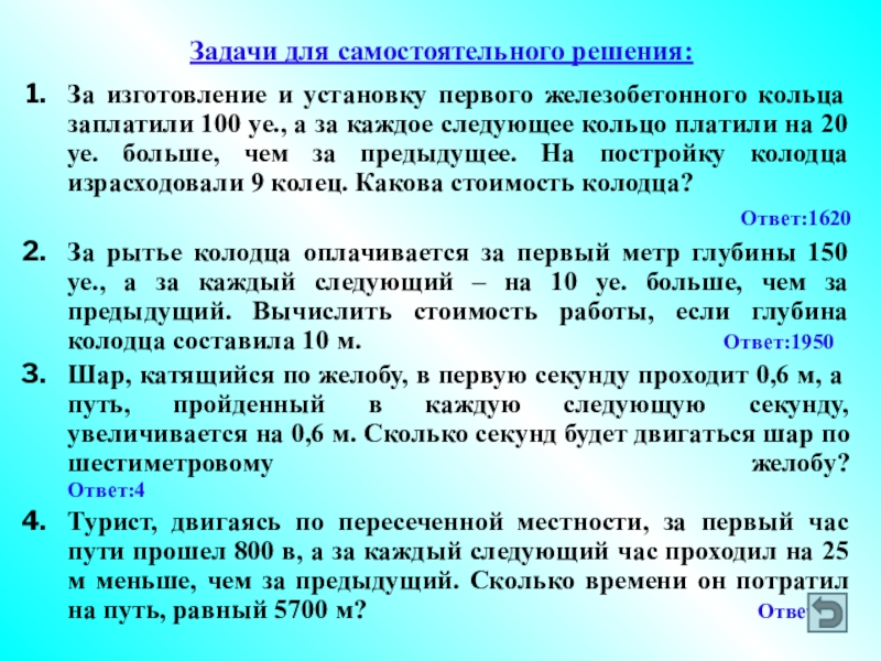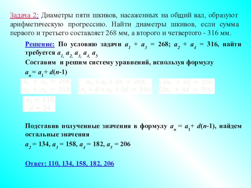 Подставив полученные значения в формулу ап = а1+ d(п-1), найдем остальные значения