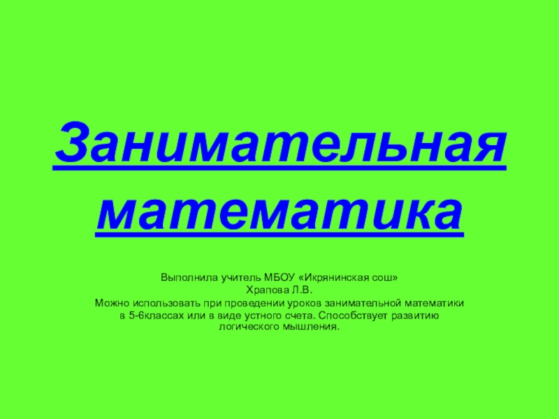 занимательной математики
