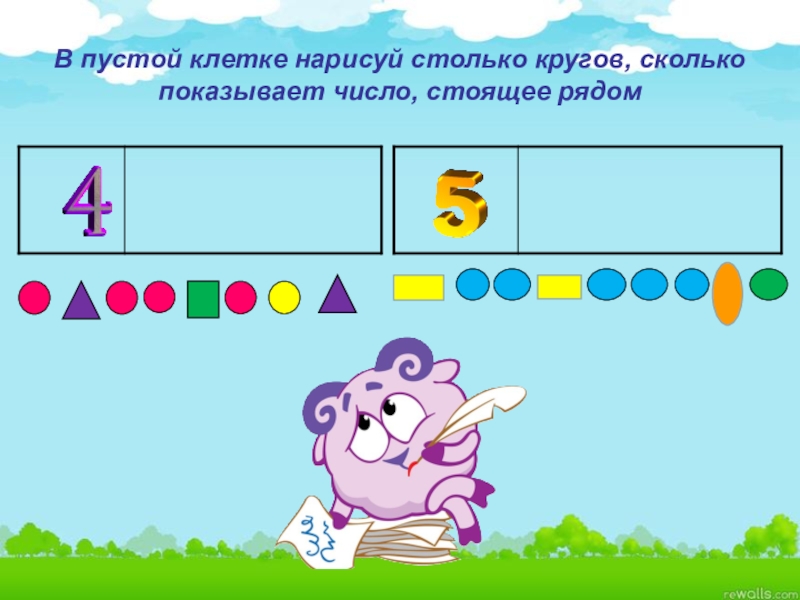 Слайд 14В пустой клетке нарисуй столько кругов, сколько показывает число, стоящее рядом