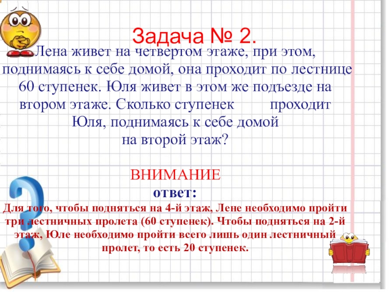 Задача № 2.  Лена живет на четвертом этаже, при этом, поднимаясь к себе домой, она проходит по