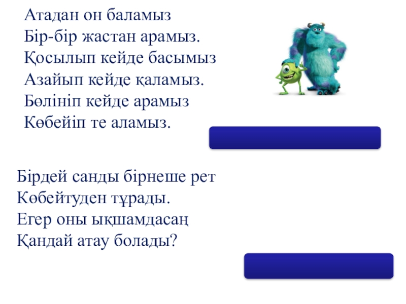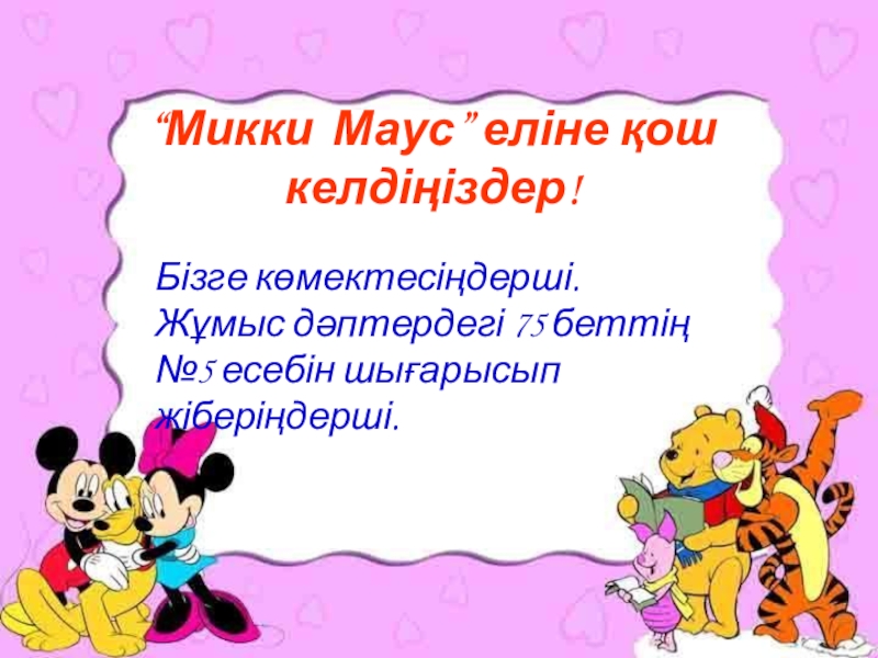 Бізге көмектесіңдерші. Жұмыс дәптердегі 75 беттің №5 есебін шығарысып жіберіңдерші.